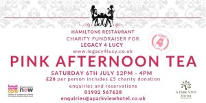 Our exciting Pink Afternoon Tea July event will be donating all profits to Legacy 4 Lucy, a charity supporting Breast Cancer Now.