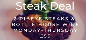 £55 for 2 Ribeye Steaks and a Bottle of House Wine